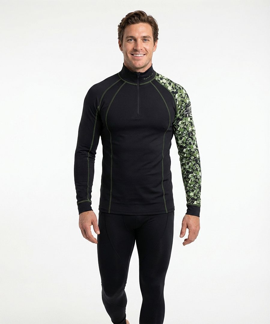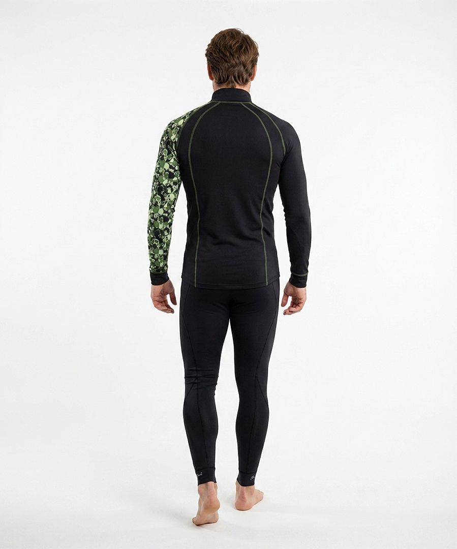 Je čas pořídit si nové pánské tričko CAMO s originálním potiskem vojenské kamufláže z lebek a s praktickým zipem z lehkého a teplého materiálu Bamboo Heavy, který dává výrobku mimořádně příjemný pocit na dotek a zajišťuje výbornou termoregulaci. Jedná se o ekologicky šetrný materiál, jelikož bambus k růstu nepotřebuje chemické ošetření ani velké množství vody. Tento kousek navrhujeme se stojákem a zipem, dlouhým rukávem a pohodlným střihem. Zip je krytý praktickým podložením aby na krku neškrábal. Navíc naše prádlo obsahuje antibakteriální složku Bamboo Kun, která brání v množení bakterií a plísní. Tričko využijete zejména na lyže či snowboard i na turistiku v přírodě, když vám nepřeje počasí. Mimo jiné v naší nabídce najdete i originální šátek CAMO, který vás ochrání před větrem i chladnějším počasím. Zkusit můžete i naše funkční čelenky a čepice.