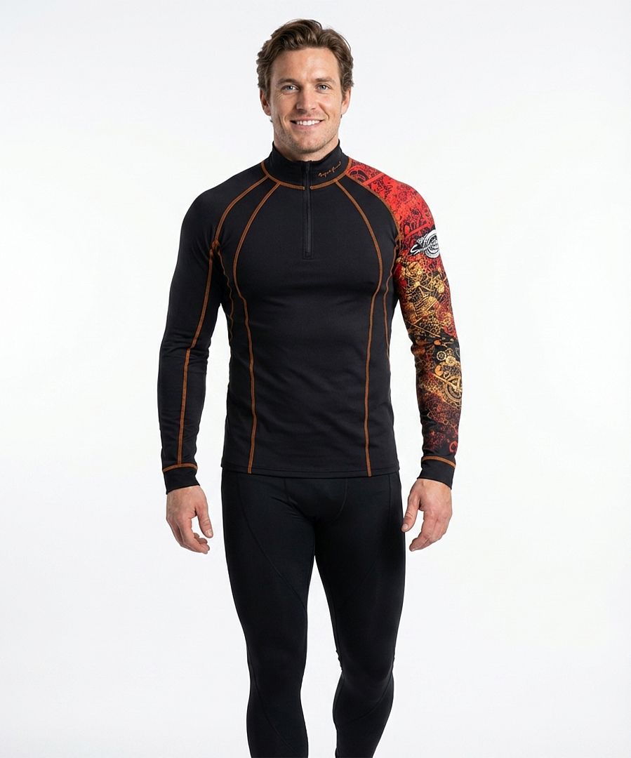 Je čas pořídit si nové pánské tričko BIKES s originálním potiskem hodinového strojku a s praktickým zipem z lehkého a teplého materiálu Bamboo Heavy, který dává výrobku mimořádně příjemný pocit na dotek a zajišťuje výbornou termoregulaci. Jedná se o ekologicky šetrný materiál, jelikož bambus k růstu nepotřebuje chemické ošetření ani velké množství vody. Tento kousek navrhujeme se stojákem a zipem, dlouhým rukávem a pohodlným střihem. Zip je krytý praktickým podložením aby na krku neškrábal. Navíc naše prádlo obsahuje antibakteriální složku Bamboo Kun, která brání v množení bakterií a plísní. Tričko využijete zejména na lyže či snowboard i na turistiku v přírodě, když vám nepřeje počasí. Mimo jiné v naší nabídce najdete i originální šátek BIKES, který vás ochrání před větrem i chladnějším počasím. Zkusit můžete i naše funkční čelenky a čepice.
