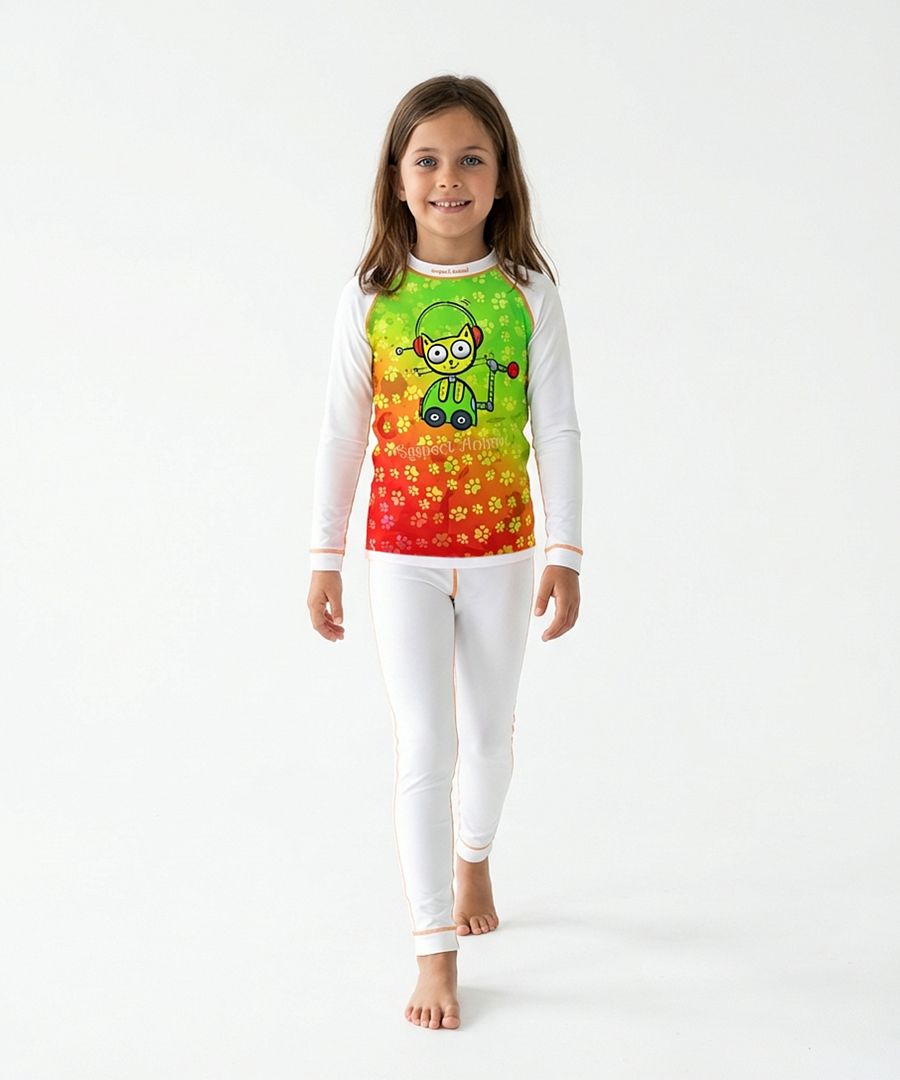 Funkční set ROBOKOČKA pro všechny malé slečny, které milují tyhle chytré kočičí všetečky, se kterými se rozhodně nudit nebudete a je jich vždycky všude plno! I svým mláďátkům bez obav pořiďte náš výhodný set funkčního prádla v bílé barvě s originálním kočičím potiskem z lehkého materiálu Bamboo Ultra, který dává výrobku mimořádně příjemný pocit na dotek a zajišťuje výbornou termoregulaci. Jedná se o ekologicky šetrný materiál, jelikož bambus k růstu nepotřebuje chemické ošetření ani velké množství vody. V balení setu dětského funkčního prádla najdete funkční tričko s dlouhým rukávem, kulatým výstřihem a všitým lemem a dlouhé spodky zakončené pohodlnou širokou manžetou. Navíc naše prádlo obsahuje antibakteriální složku Bamboo Kun, která brání v množení bakterií a plísní. Set využijete nejen v zimě na lyže nebo na turistiku v přírodě, když vám nepřeje počasí. Díky originálnímu neokoukanému obrázku si váš potěr zafrajeří i jen tak ;) A mimo jiné v naší nabídce najdete i originální šátek ROBOKOČKA se stejnou grafikou jako tričko, který ochrání před větrem i chladnějším počasím a svůj klon vyladíte k naprosté dokonalosti.