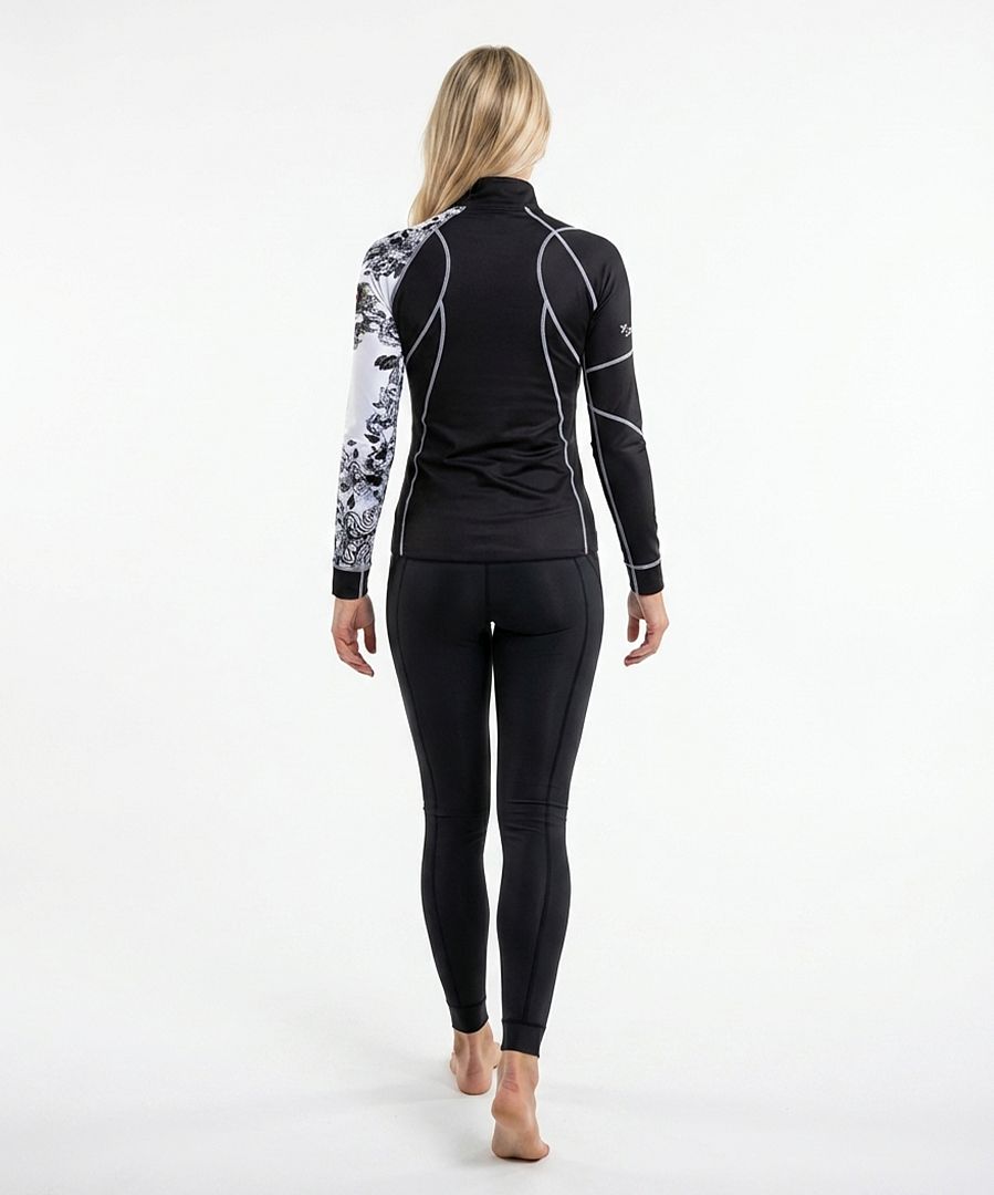 LADY, toto skvělé dámské funkční triko se zipem v černé barvě, s originálním potiskem mexické květinové Santa Muerte a s kontrastním bílým prošitím, které pro vás šijeme z materiálu Bamboo Thermo vám rozhodně nesmí v šatníku chybět. Ekologický zip YKK NATULON®, který je vyrobený z recyklovaných materiálů je krytý praktickým podložením aby na krku a pod bradou neškrábal. Bamboo Thermo je náš materiál s nejvyšší gramáží, který má navíc výborné termoregulační vlastnosti, které vám zajistí komfort při nošení a je vhodný nejen ke kombinaci a vrstvení, ale i samostaně na zimu.