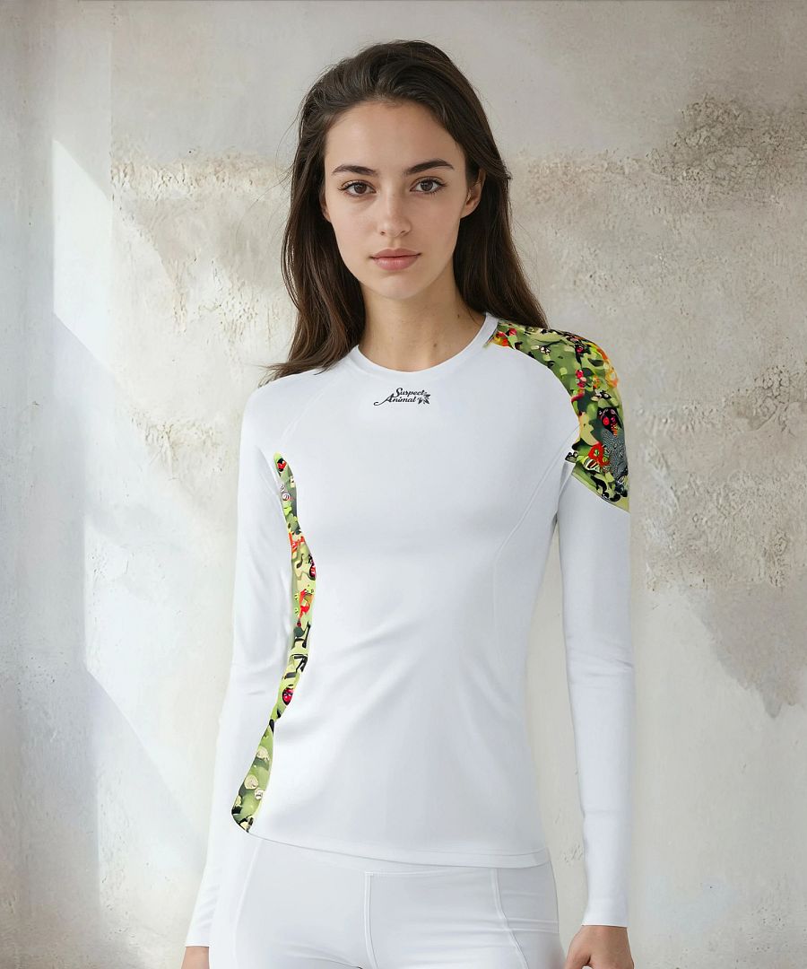 CAMO, toto skvělé dámské funkční triko s dlouhým rukávem v bílé barvě, s decentním prošitím v barvě trička a s originálním maskáčovým potiskem, které pro vás šijeme z materiálu Bamboo Ultra vám rozhodně nesmí v šatníku chybět. Bamboo Ultra je náš materiál s nejnižší gramáží, který má navíc výborné termoregulační vlastnosti, které vám zajistí komfort při nošení.