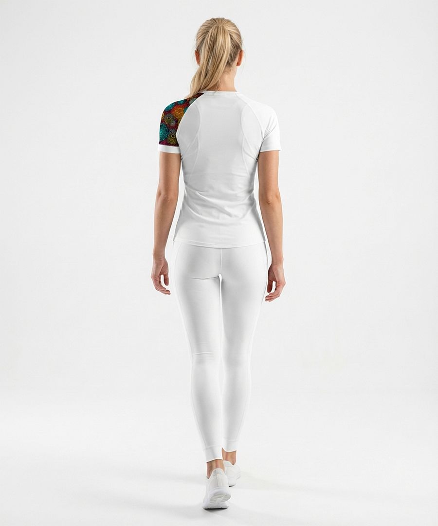 MANDALA, toto skvělé dámské funkční triko s krátkým rukávem v bílé barvě, s originálním potiskem barevných mandal a s elegantním neutrálním prošitím, které pro vás šijeme z materiálu Bamboo Ultra vám rozhodně nesmí v šatníku chybět. Bamboo Ultra je náš materiál s nejnižší gramáží, který má navíc výborné termoregulační vlastnosti, které vám zajistí komfort při nošení.