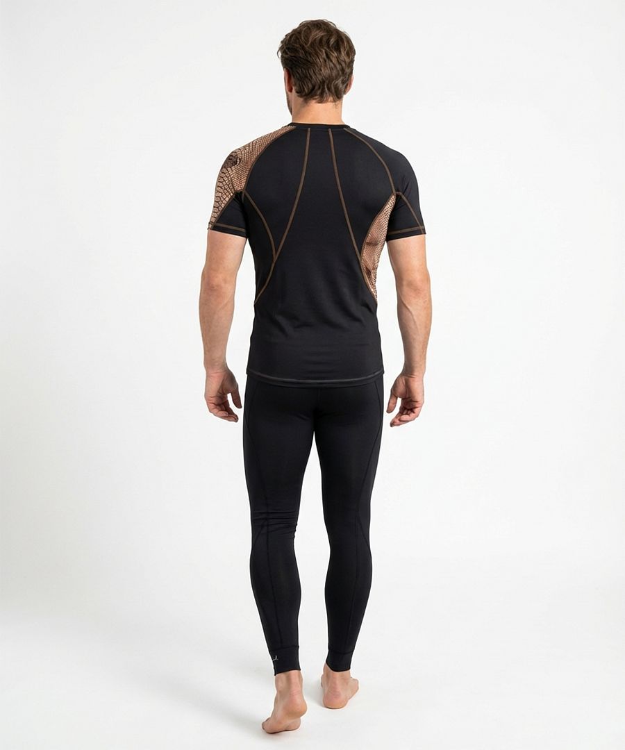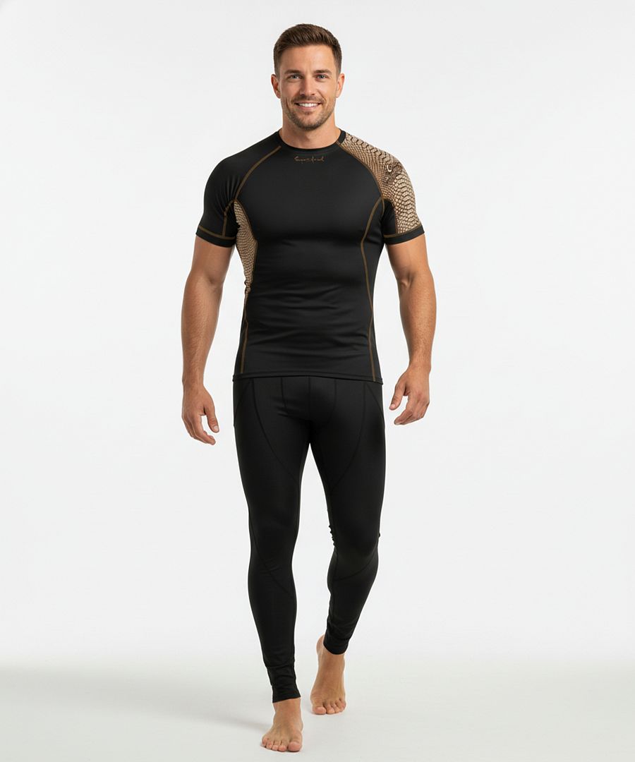Neváhejte a zkuste naše originální funkční triko s krátkým rukávem a anatomicky tvarovaným střihem. Ultra lehký materiál Bamboo Ultra vás nebude omezovat při žádné sportovní aktivitě. Tento kousek nabízíme s jedinečnými rukávy, které zdobí potisk krokodýlí kůže. Dokonce nesmí chybět ani decentní logo na hrudi. Základem tohoto modelu je především skvělá absorpce vlhkosti až 3 krát víc oproti bavlně. Bambusové prádlo díky přírodní složce Bamboo Kun dokáže blokovat množení bakterií a plísní a zároveň dokáže dobře pohltit až 90 % škodlivého UV záření. Naše prádlo nepotřebuje chemické ošetření, tudíž nedráždí pokožku. Ideální pro muže náchylnější k alergiím nebo s velmi citlivou pokožku. Nejen, že naše funkční prádlo využijete při sportovních aktivitách, vhodné je také při domácím lenošení. Navíc u nás najdete nenahraditelný doplněk do každého počasí. Ten představuje sportovní multifunkční šátek, který vyniká originálním potiskem ladící s našim tričkem CROCODILE MAN.