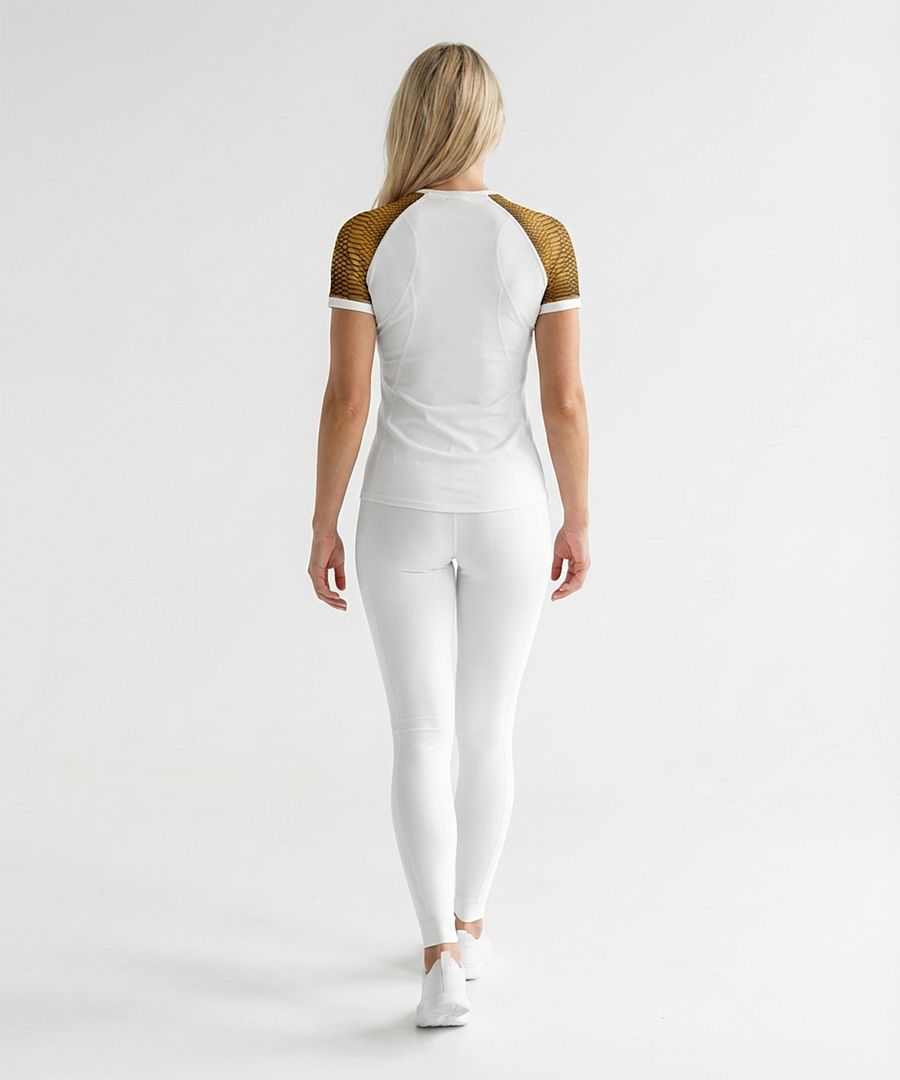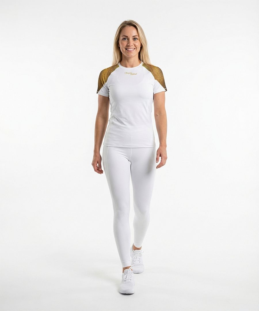 CROCODILE LADY, toto skvělé dámské funkční triko s krátkým rukávem v bílé barvě, s neutrálním prošitím a s originálním potiskem krokodýlí kůže, které pro vás šijeme z materiálu Bamboo Light New, vám rozhodně nesmí v šatníku chybět. Bamboo Light je náš materiál střední gramáže se změkčující úpravou jemným pobroušením, takzvaným SKIN PEACH EFFECT, tedy efektem broskvové kůže, který má navíc výborné termoregulační vlastnosti, které vám zajistí komfort při nošení.