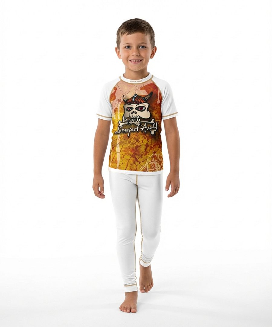 Tričko VIKING s krátkým rukávem pro všechny malé neohrožené bojovníky, kteří se nebojí ničeho a nikoho! Bez obav pořiďte naše funkční tričko v bílé barvě s originálním potiskem vikingské helmy z lehkého materiálu Bamboo Light New se změkčující úpravou jemným pobroušením, takzvaným SKIN PEACH EFFECT, tedy efektem broskvové kůže, který dává výrobku mimořádně příjemný pocit na dotek a zajišťuje výbornou termoregulaci. Jedná se o ekologicky šetrný materiál, jelikož bambus k růstu nepotřebuje chemické ošetření ani velké množství vody. Trička navrhujeme v černé nebo bílé barvě, s krátkým rukávem a širším lemem pro holky i kluky. Navíc naše prádlo obsahuje antibakteriální složku Bamboo Kun, která brání v množení bakterií a plísní. Tričko využijete nejen v zimě na lyže nebo na turistiku v přírodě, když vám nepřeje počasí. Díky originálnímu neokoukanému obrázku si váš potěr zafrajeří i jen tak ;) A mimo jiné v naší nabídce najdete i originální šátek VIKING se stejnou grafikou jako tričko, který ochrání před větrem i chladnějším počasím a svůj klon vyladíte k naprosté dokonalosti.