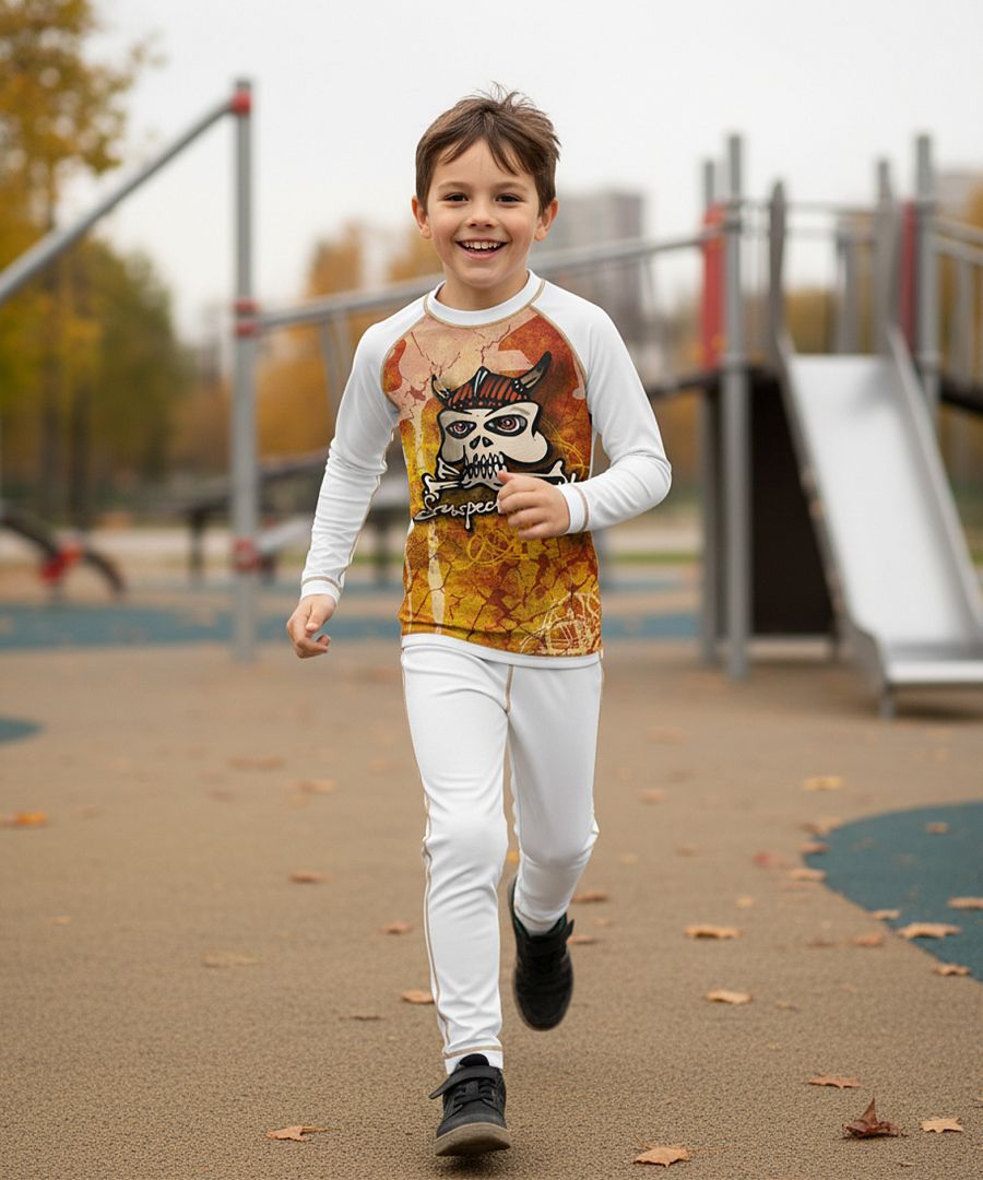 Pro všechny malé neohrožené bojovníky, kteří se nebojí ničeho a nikoho bez obav pořiďte náš výhodný set funkčního prádla VIKING v bílé barvě s originálním potiskem vikingské helmy z lehkého materiálu Bamboo Light New se změkčující úpravou jemným pobroušením, takzvaným SKIN PEACH EFFECT, tedy efektem broskvové kůže, který dává výrobku mimořádně příjemný pocit na dotek a zajišťuje výbornou termoregulaci. Jedná se o ekologicky šetrný materiál, jelikož bambus k růstu nepotřebuje chemické ošetření ani velké množství vody. V balení setu dětského funkčního prádla najdete funkční tričko s dlouhým rukávem, kulatým výstřihem a všitým lemem a dlouhé spodky zakončené pohodlnou širokou manžetou. Navíc naše prádlo obsahuje antibakteriální složku Bamboo Kun, která brání v množení bakterií a plísní. Set využijete nejen v zimě na lyže nebo na turistiku v přírodě, když vám nepřeje počasí. Díky originálnímu neokoukanému obrázku si váš potěr zafrajeří i jen tak ;) A mimo jiné v naší nabídce najdete i originální šátek VIKING se stejnou grafikou jako tričko, který ochrání před větrem i chladnějším počasím a svůj klon vyladíte k naprosté dokonalosti.