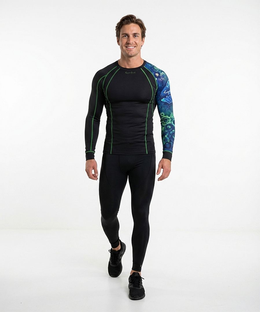 Potisk části tohoto funkčního prádla je proveden na doplňkový materiál 100% polyester. Zvažte tuto skutečnost při výběru oblečení pro alergiky.