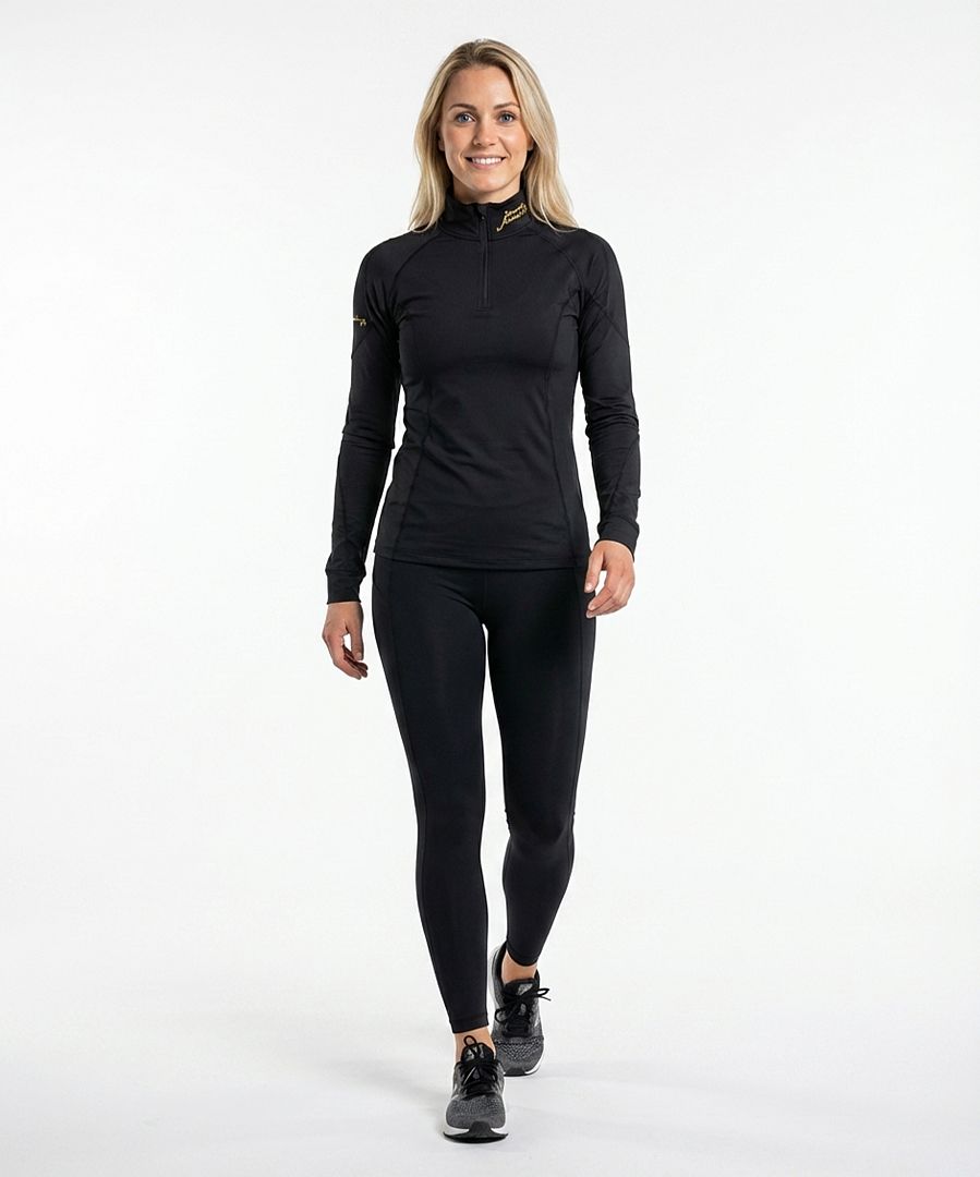 Dámské funkční triko dlouhý rukáv se zipem METALLIC černá Bamboo Heavy