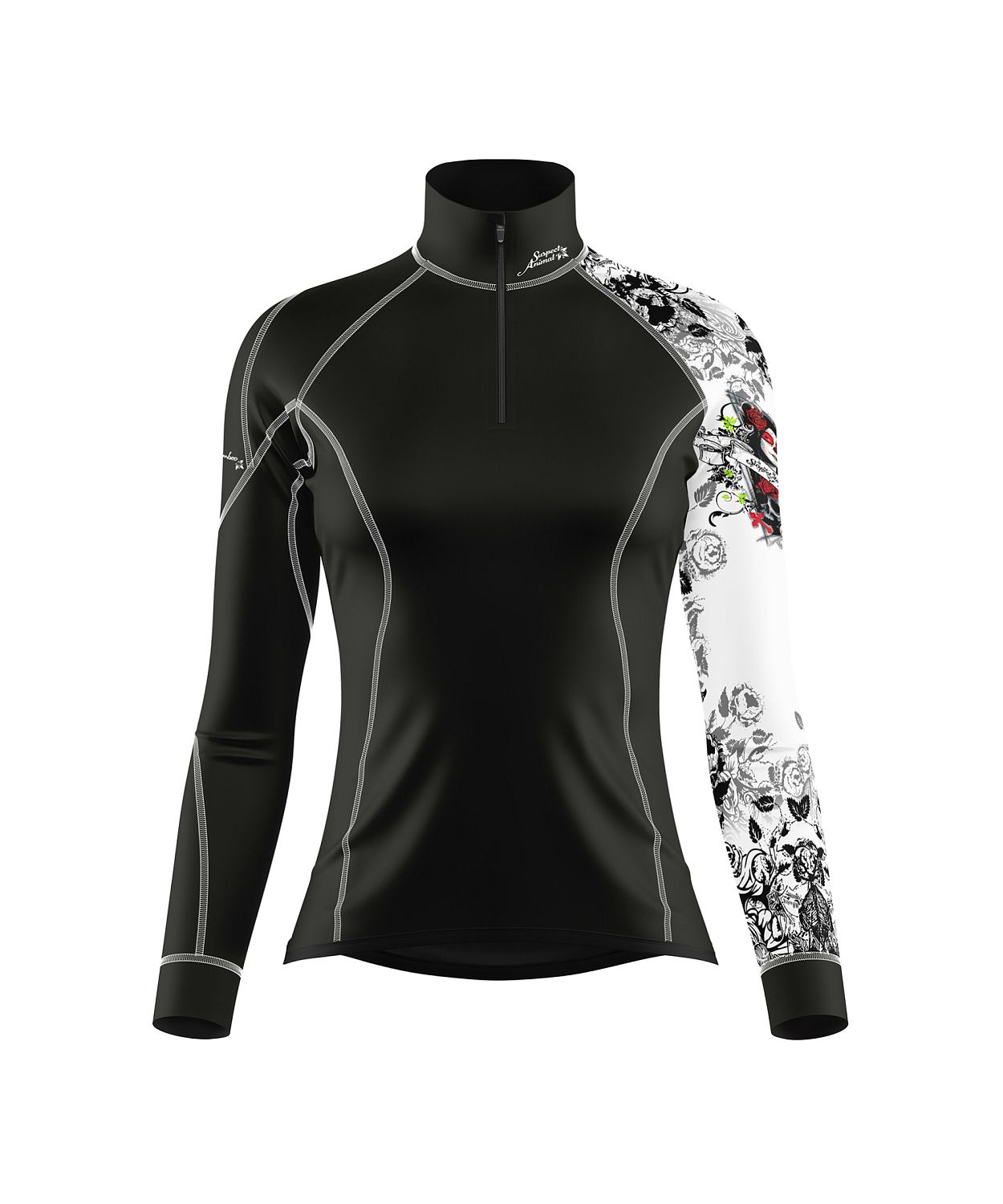 Neváhejte nad tričkem LADY s originálním potiskem a s praktickým zipem z lehkého materiálu Bamboo Thermo, který dává výrobku mimořádně příjemný pocit na dotek a zajišťuje výbornou termoregulaci. Jedná se o ekologicky šetrný materiál, jelikož bambus k růstu nepotřebuje chemické ošetření ani velké množství vody. Tento kousek navrhujeme se stojákem a zipem, dlouhým rukávem a lichotivým střihem. Zip je krytý praktickým podložením aby na krku neškrábal. Navíc naše prádlo obsahuje antibakteriální složku Bamboo Kun, která brání v množení bakterií a plísní. Tričko využijete zejména na lyže či snowboard i na turistiku v přírodě, když vám nepřeje počasí. Mimo jiné v naší nabídce najdete i originální látkový šátek LADY, který vás ochrání před větrem i chladnějším počasím. Zkusit můžete i naše funkční čelenky a čepice.