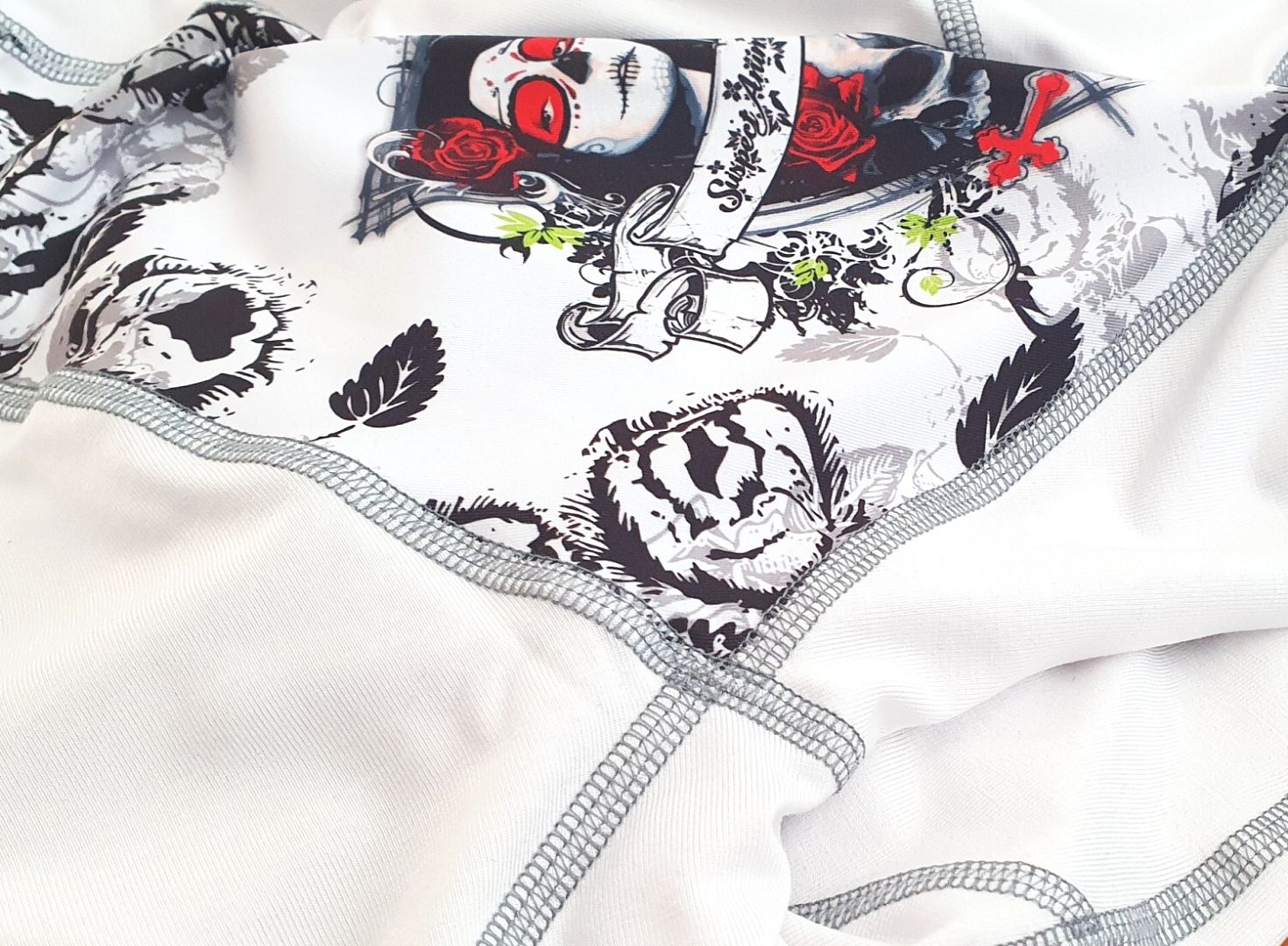 LADY, toto skvělé dámské funkční triko s krátkým rukávem v bílé barvě, s originálním potiskem mexické květinové Santa Muerte a s jemným světle šedým prošitím, které pro vás šijeme z materiálu Bamboo Ultra vám rozhodně nesmí v šatníku chybět. Bamboo Ultra je náš materiál s nejnižší gramáží, který má navíc výborné termoregulační vlastnosti, které vám zajistí komfort při nošení.