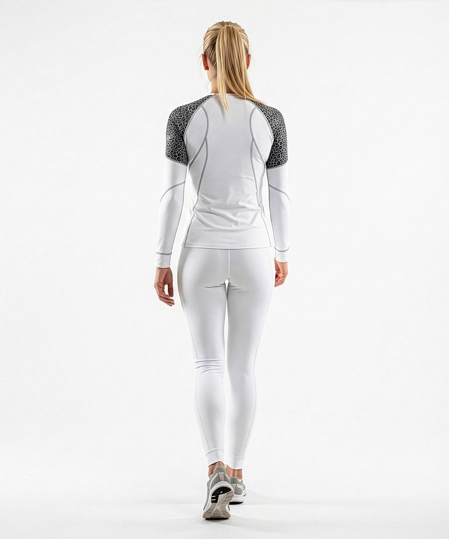 LEO, toto skvělé dámské funkční triko s dlouhým rukávem v bílé barvě, s originálním šedým leopardím potiskem a s prošitím v barvě potisku, které pro vás šijeme z materiálu Bamboo Light New, vám rozhodně nesmí v šatníku chybět. Bamboo Light je náš materiál střední gramáže se změkčující úpravou jemným pobroušením, takzvaným SKIN PEACH EFFECT, tedy efektem broskvové kůže, který má navíc výborné termoregulační vlastnosti, které vám zajistí komfort při nošení.