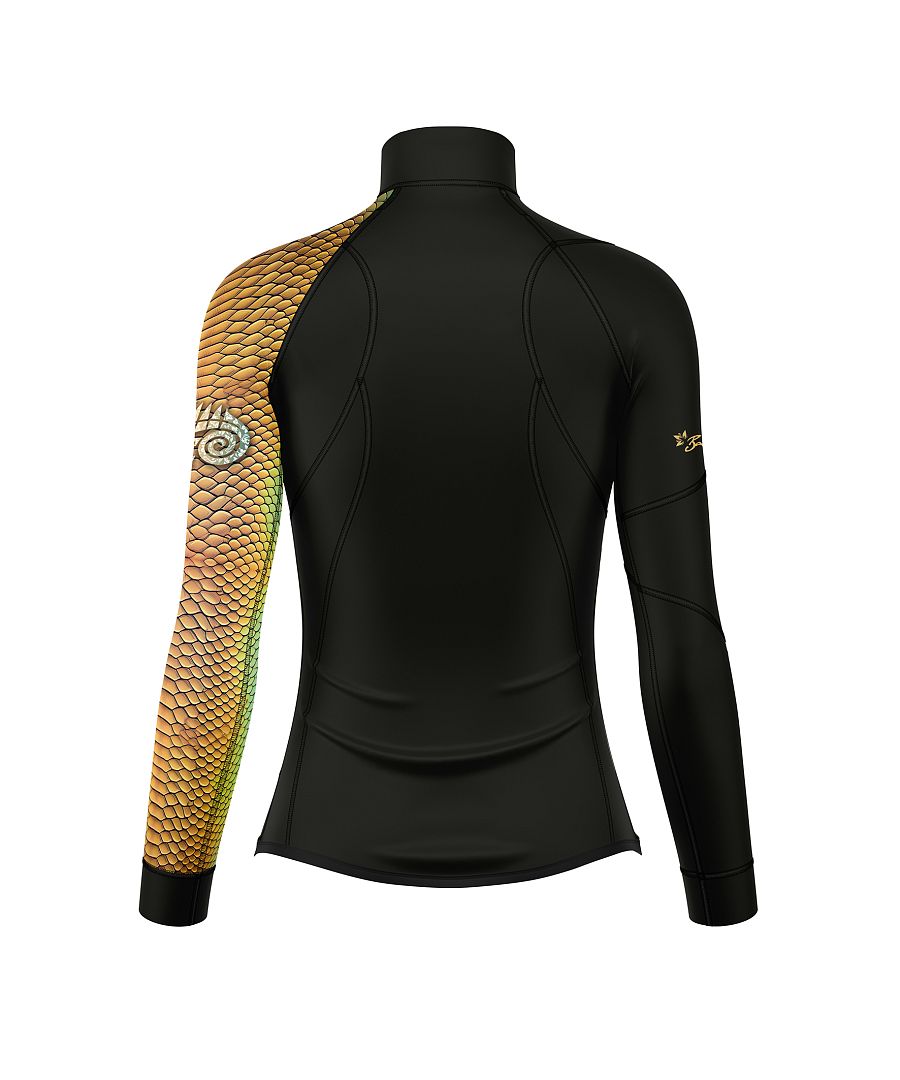 CROCODILE LADY, toto skvělé dámské funkční triko se zipem v černé barvě, s neutrálním prošitím a s originálním potiskem krokodýlí kůže, které pro vás šijeme z materiálu Bamboo Thermo vám rozhodně nesmí v šatníku chybět. Ekologický zip YKK NATULON®, který je vyrobený z recyklovaných materiálů je krytý praktickým podložením aby na krku a pod bradou neškrábal. Bamboo Thermo je náš materiál s nejvyšší gramáží, který má navíc výborné termoregulační vlastnosti, které vám zajistí komfort při nošení a je vhodný nejen ke kombinaci a vrstvení, ale i samostaně na zimu.