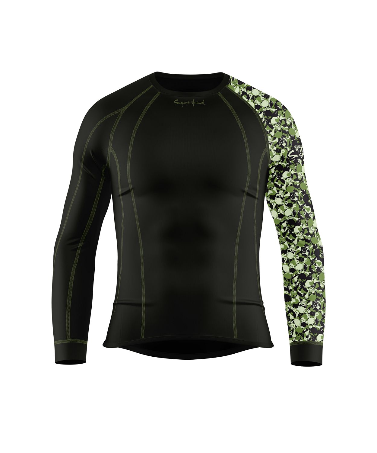 Je čas pořídit si nové pánské tričko CAMO s originálním potiskem vojenské kamufláže z lebek z lehkého a teplého materiálu Bamboo Heavy, který dává výrobku mimořádně příjemný pocit na dotek a zajišťuje výbornou termoregulaci. Jedná se o ekologicky šetrný materiál, jelikož bambus k růstu nepotřebuje chemické ošetření ani velké množství vody. Tento kousek navrhujeme s kulatým výstřihem, dlouhým rukávem a pohodlným střihem. Navíc naše prádlo obsahuje antibakteriální složku Bamboo Kun, která brání v množení bakterií a plísní. Tričko využijete zejména na lyže či snowboard i na turistiku v přírodě, když vám nepřeje počasí. Mimo jiné v naší nabídce najdete i originální šátek CAMO, který vás ochrání před větrem i chladnějším počasím. Zkusit můžete i naše funkční čelenky a čepice.