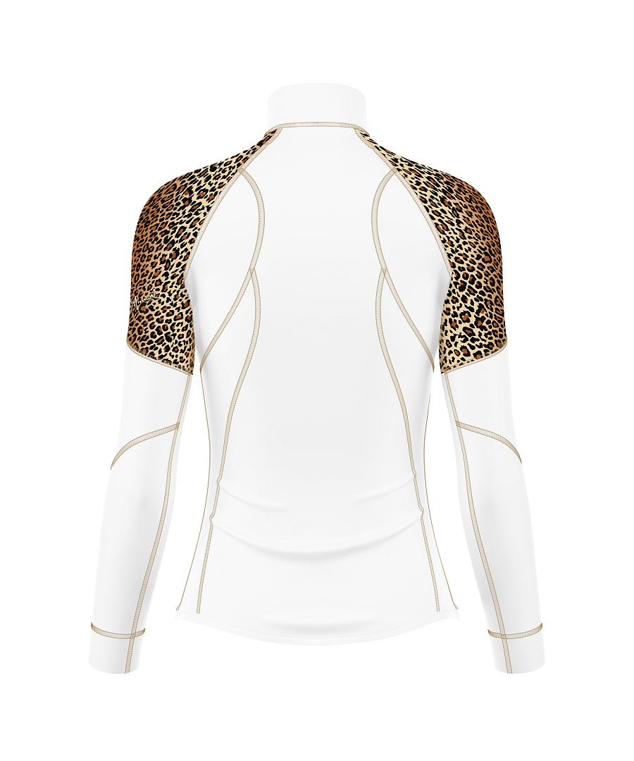 LEO, toto skvělé dámské funkční triko se zipem v bílé barvě, s originálním hnědým leopardím potiskem a s prošitím v barvě potisku, které pro vás šijeme z materiálu Bamboo Light New, vám rozhodně nesmí v šatníku chybět. Zip je krytý praktickým podložením aby na krku a pod bradou neškrábal. Bamboo Light je náš materiál střední gramáže se změkčující úpravou jemným pobroušením, takzvaným SKIN PEACH EFFECT, tedy efektem broskvové kůže, který má navíc výborné termoregulační vlastnosti, které vám zajistí komfort při nošení.