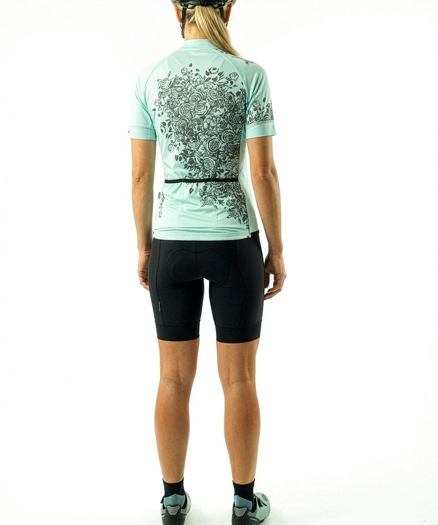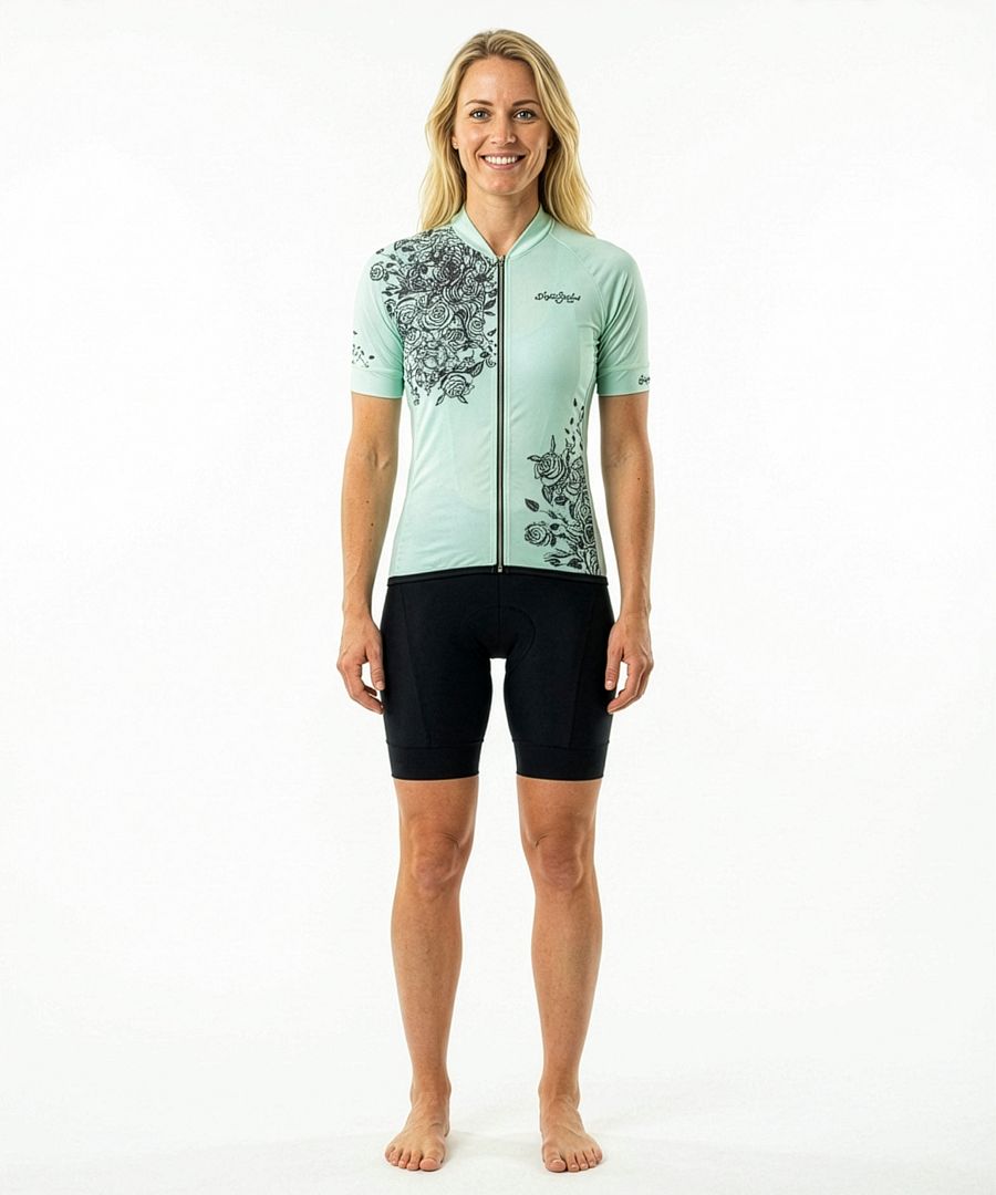 Dámský cyklistický dres s krátkým rukávem Flowers Mint s návleky na ruce