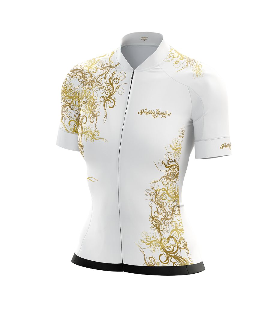 Představujeme vám novinku - dámský cyklistický dres Gold bílá s krátkým rukávem a předním dlouhým zipem v naší limitované edici Suspect Animal. Dres má prodloužený zadní díl, který zabezpečí plné pokrytí v jezdecké pozici a tři zadní otevřené kapsy s reflexním bezpečnostním páskem ve švu kapsy.