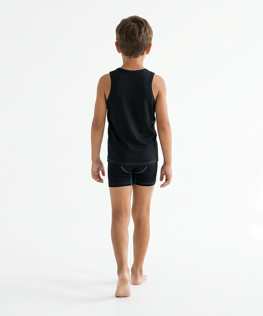 I spodní prádlo je důležitou součástí života a nejen trička jsou příjemný společník od jara do zimy. Dětský nátělník CHAMELEON v černé barvě s kontrastním duhově azurovým prošitím a potiskem se stane nepostradatelným parťákem vašich dětí při sportovní i každodenní aktivitě. Je vyrobený z z lehkého materiálu Bamboo Ultra, který dává výrobku mimořádně příjemný pocit na dotek a zajišťuje výbornou termoregulaci. Jedná se o ekologicky šetrný materiál, jelikož bambus k růstu nepotřebuje chemické ošetření ani velké množství vody. Navíc naše prádlo obsahuje antibakteriální složku Bamboo Kun, která brání v množení bakterií a plísní. Nátělník vaše mládě využije nejen v zimě na lyže, ale i na turistiku v přírodě a nebo klidně jen na cestu do školky nebo školy. V naší nabídce také mimo jiné najdete i originální šátek CHAMELEON se stejnou grafikou jako trička, která můžete zkombinovat do setu a svůj klon tak vyladíte k naprosté dokonalosti ;)