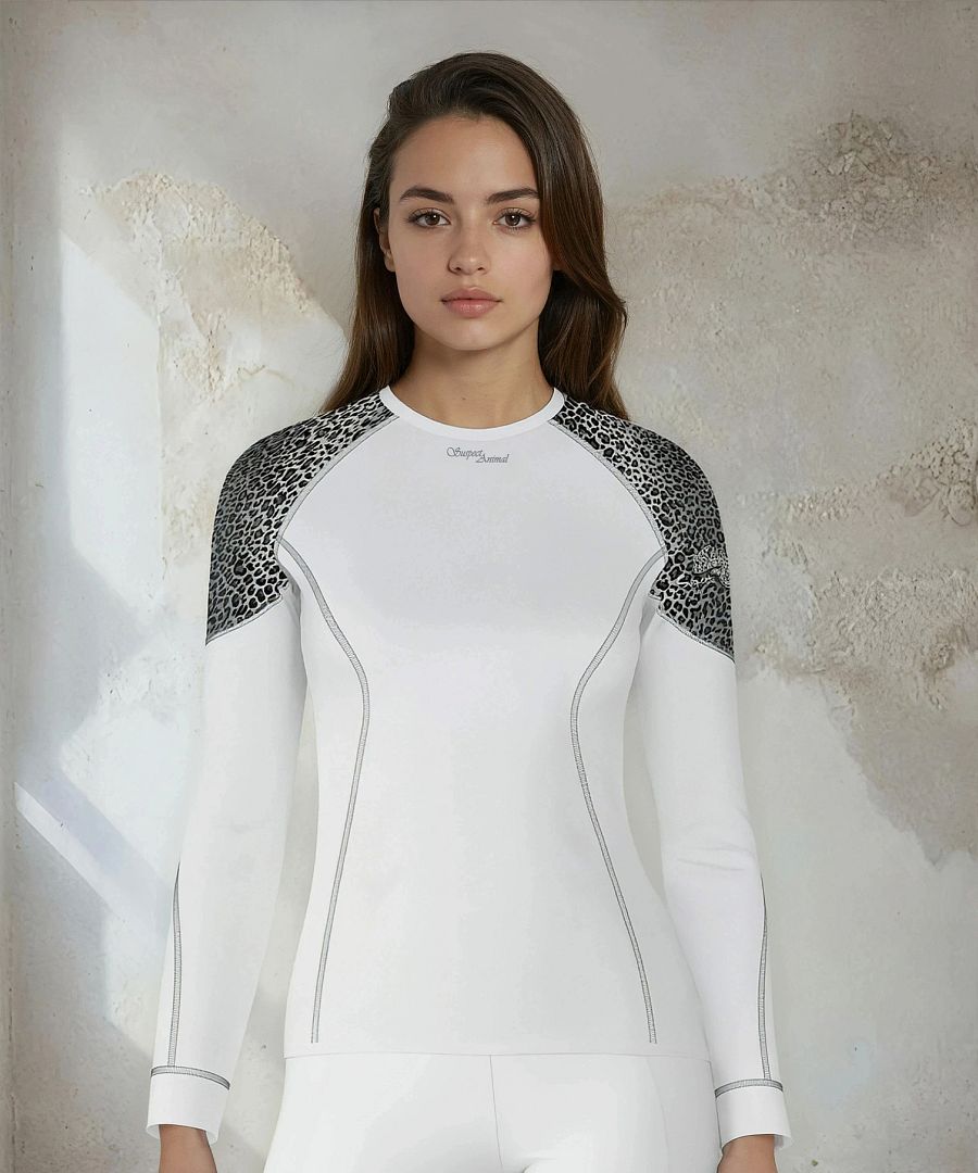 LEO, toto skvělé dámské funkční triko s dlouhým rukávem v bílé barvě, s originálním šedým leopardím potiskem a s prošitím v barvě potisku, které pro vás šijeme z materiálu Bamboo Light New, vám rozhodně nesmí v šatníku chybět. Bamboo Light je náš materiál střední gramáže se změkčující úpravou jemným pobroušením, takzvaným SKIN PEACH EFFECT, tedy efektem broskvové kůže, který má navíc výborné termoregulační vlastnosti, které vám zajistí komfort při nošení.