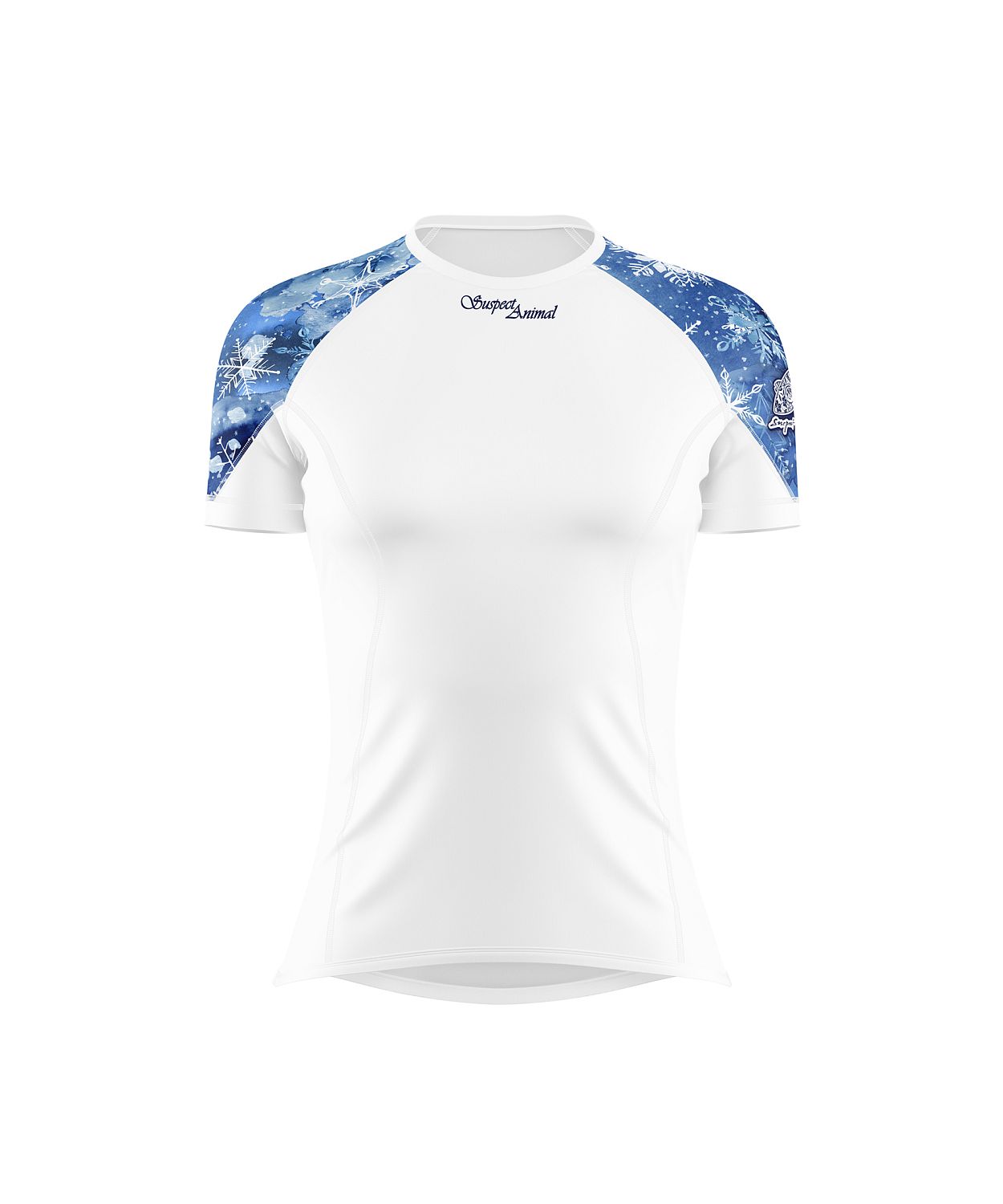 SNOWFLAKES, toto skvělé dámské funkční triko s krátkým rukávem v bílé barvě s neutrálním elegantním prošitím a s originálním potiskem sněhových vloček, které pro vás šijeme z materiálu Bamboo Light New, vám rozhodně nesmí v šatníku chybět. Bamboo Light je náš materiál střední gramáže se změkčující úpravou jemným pobroušením, takzvaným SKIN PEACH EFFECT, tedy efektem broskvové kůže, který má navíc výborné termoregulační vlastnosti, které vám zajistí komfort při nošení.