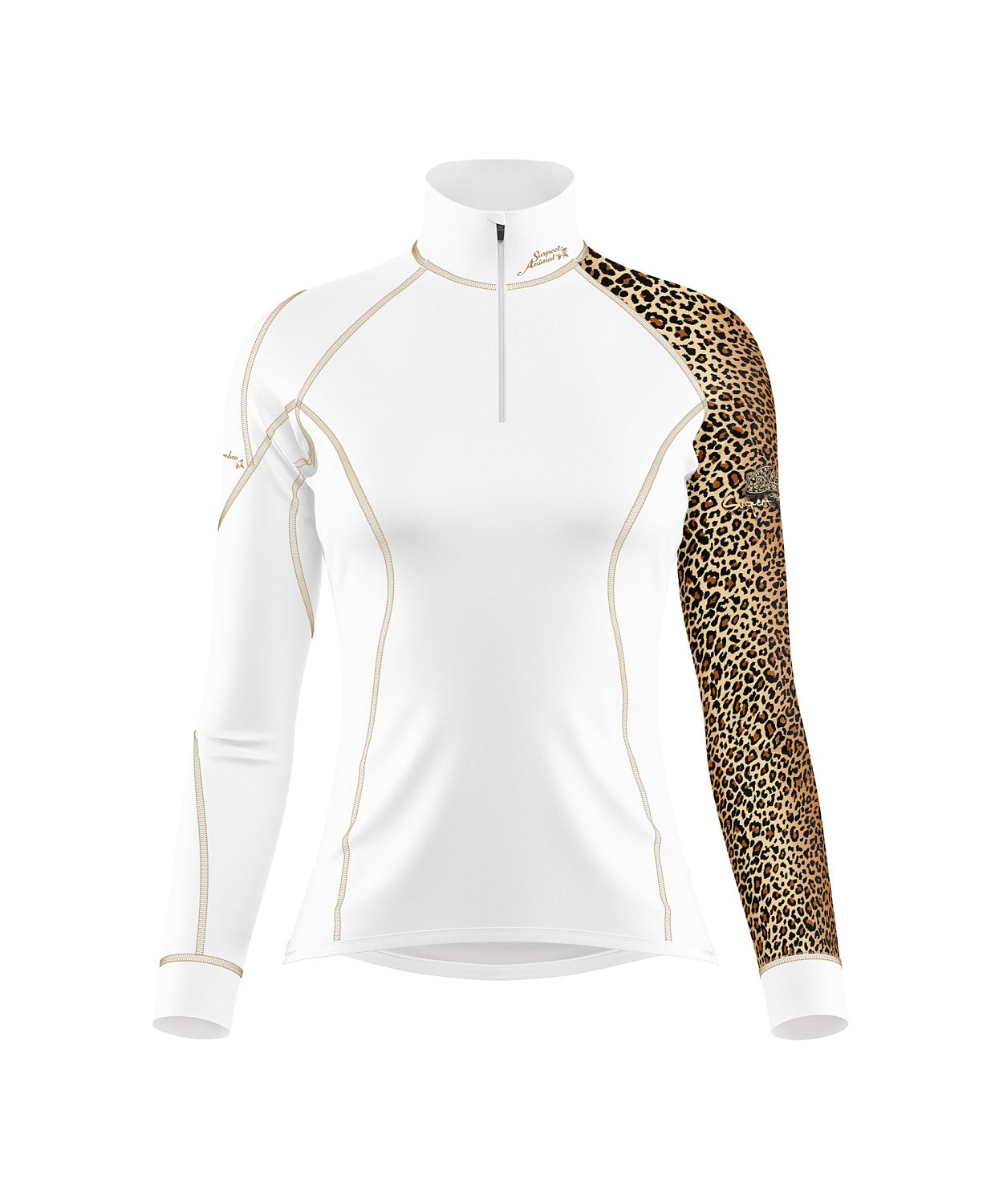 LEO, toto skvělé dámské funkční triko se zipem v bílé barvě, s originálním hnědým leopardím potiskem a s kontrastním prošitím v barvě potisku, které pro vás šijeme z materiálu Bamboo Heavy vám rozhodně nesmí v šatníku chybět. Ekologický zip YKK NATULON®, který je vyrobený z recyklovaných materiálů je krytý praktickým podložením aby na krku a pod bradou neškrábal. Bamboo Heavy je náš materiál s vyšší gramáží, který má navíc výborné termoregulační vlastnosti, které vám zajistí komfort při nošení a je vhodný nejen ke kombinaci a vrstvení, ale i samostaně na zimu.