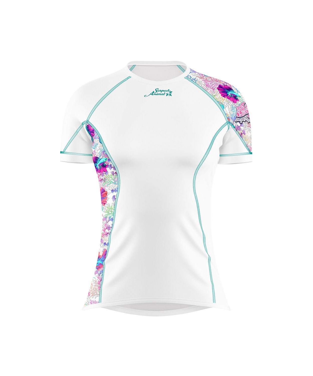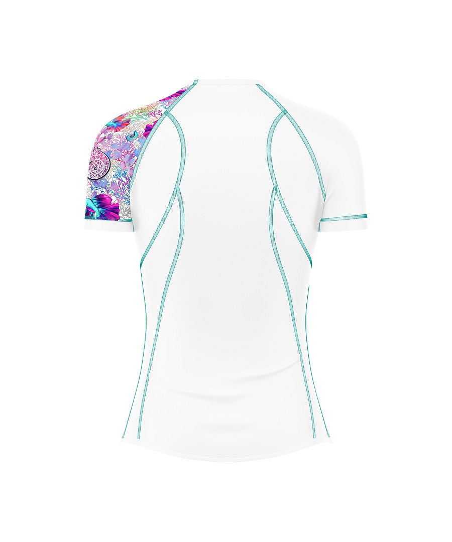 CORAL, toto skvělé dámské funkční triko s krátkým rukávem v bílé barvě, s originálním potiskem mořských korálů a kontrastním prošitím v tyrkysově modré, které pro vás šijeme z materiálu Bamboo Ultra vám rozhodně nesmí v šatníku chybět. Bamboo Ultra je náš materiál s nejnižší gramáží, který má navíc výborné termoregulační vlastnosti, které vám zajistí komfort při nošení.