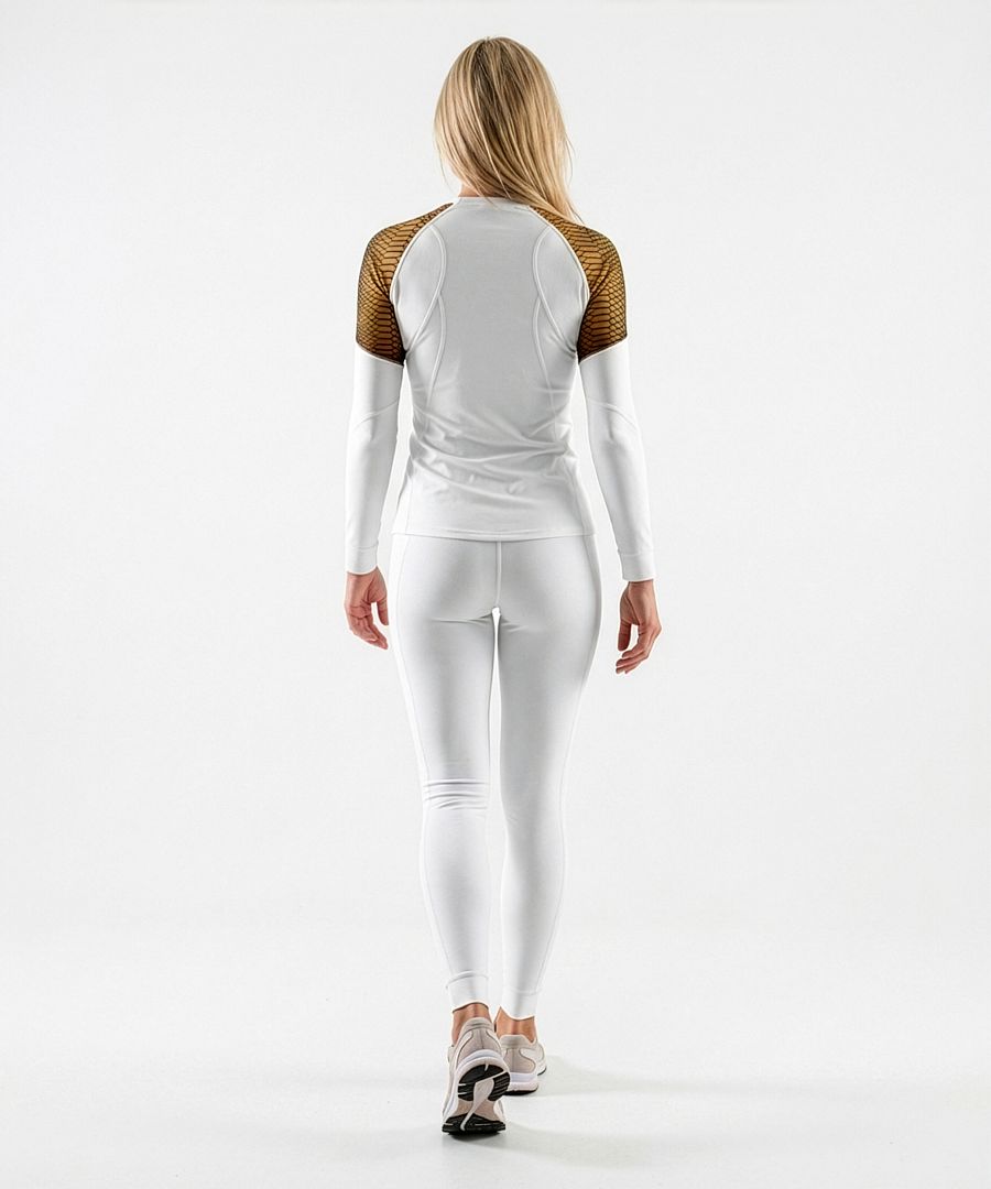 CROCODILE LADY, toto skvělé dámské funkční triko s dlouhým rukávem v bílé barvě, s neutrálním prošitím a s originálním potiskem krokodýlí kůže, které pro vás šijeme z materiálu Bamboo Light New, vám rozhodně nesmí v šatníku chybět. Bamboo Light je náš materiál střední gramáže se změkčující úpravou jemným pobroušením, takzvaným SKIN PEACH EFFECT, tedy efektem broskvové kůže, který má navíc výborné termoregulační vlastnosti, které vám zajistí komfort při nošení.