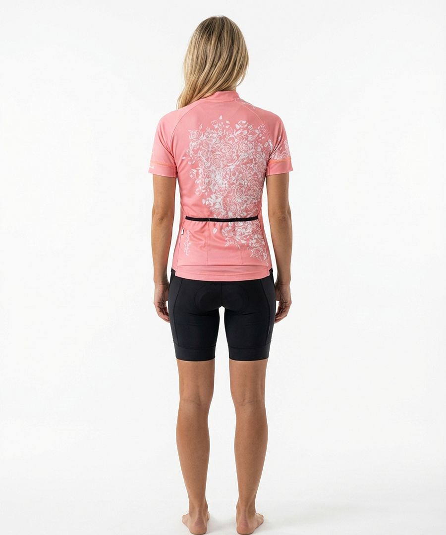 Dámský cyklistický dres FLOWERS CORAL s návleky na ruce Novinka Limitka