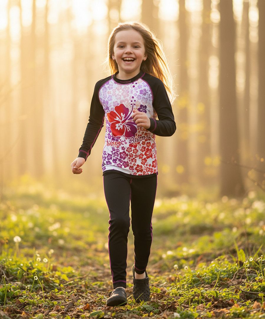 Pro malé slečny je naše tričko s dlouhým rukávem HAWAII v černé barvě jako dělané! Bez obav pořiďte naše funkční tričko s originálním havajským květinovým potiskem z teplého materiálu Bamboo Heavy, který dává výrobku mimořádně příjemný pocit na dotek a zajišťuje výbornou termoregulaci. Jedná se o ekologicky šetrný materiál, jelikož bambus k růstu nepotřebuje chemické ošetření ani velké množství vody. Tento dětský kousek navrhujeme s kulatým výstřihem a všitým lemem, dlouhým rukávem a pohodlným střihem. Navíc naše prádlo obsahuje antibakteriální složku Bamboo Kun, která brání v množení bakterií a plísní. Tričko využijete nejen v zimě na lyže nebo na turistiku v přírodě, když vám nepřeje počasí. Díky originálnímu neokoukanému obrázku si váš potěr zafrajeří i jen tak ;) A mimo jiné v naší nabídce najdete i originální šátek HAWAII Kids se stejnou grafikou jako tričko, který ochrání před větrem i chladnějším počasím a svůj klon vyladíte k naprosté dokonalosti. Hodit se vám může i výhodný nákup celého setu.